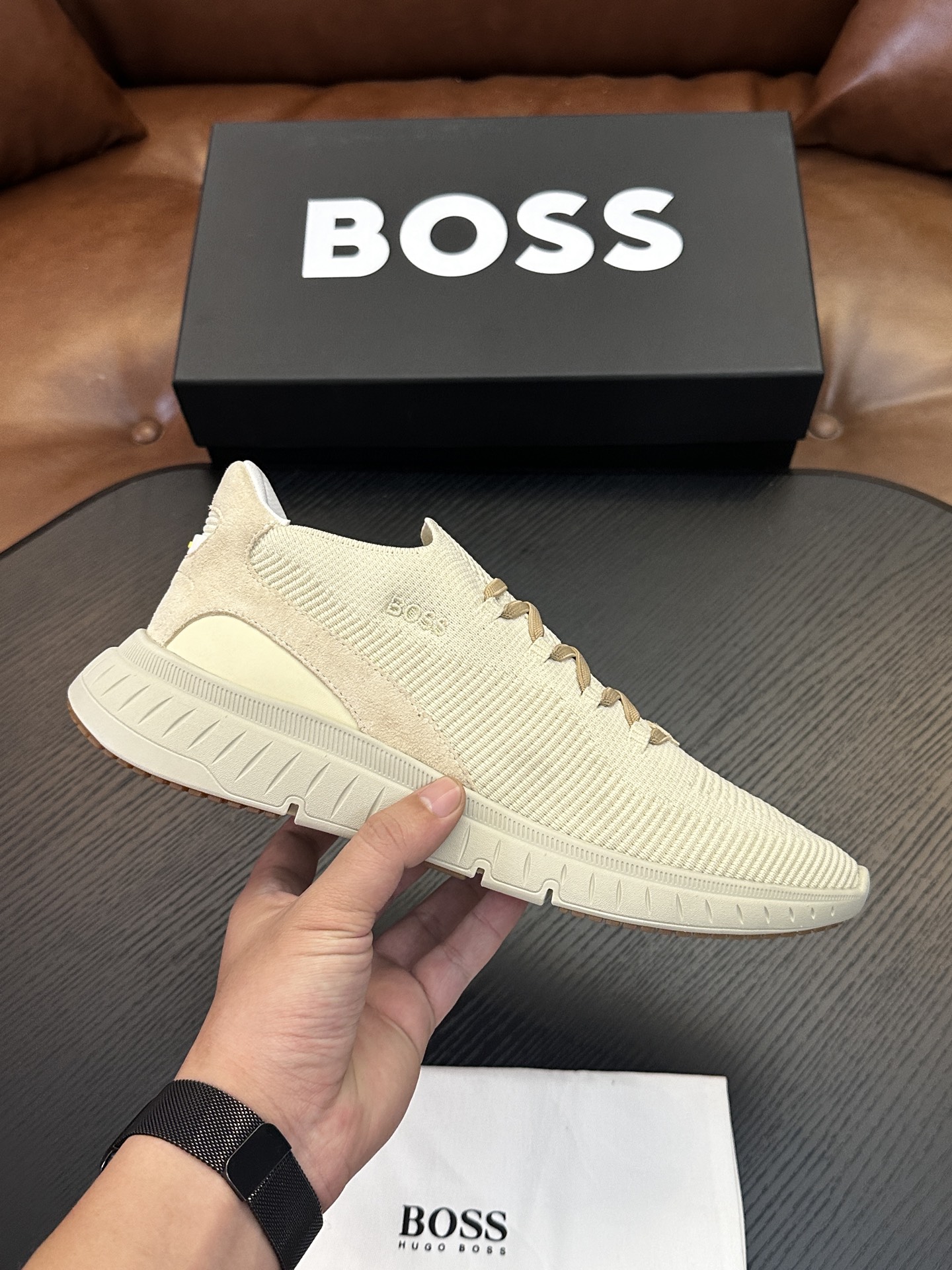 Ce chaussures est de qualité AAAAA 1: 1 (superbe). Les matériaux utilisés sont identiques à ceux d'origine. Les marques de marque BOSS ne se distinguent pas de l'authentique. Les photos prennent par chaussures réels, ce que vous recevez sera 100% identique avec nos photos.
