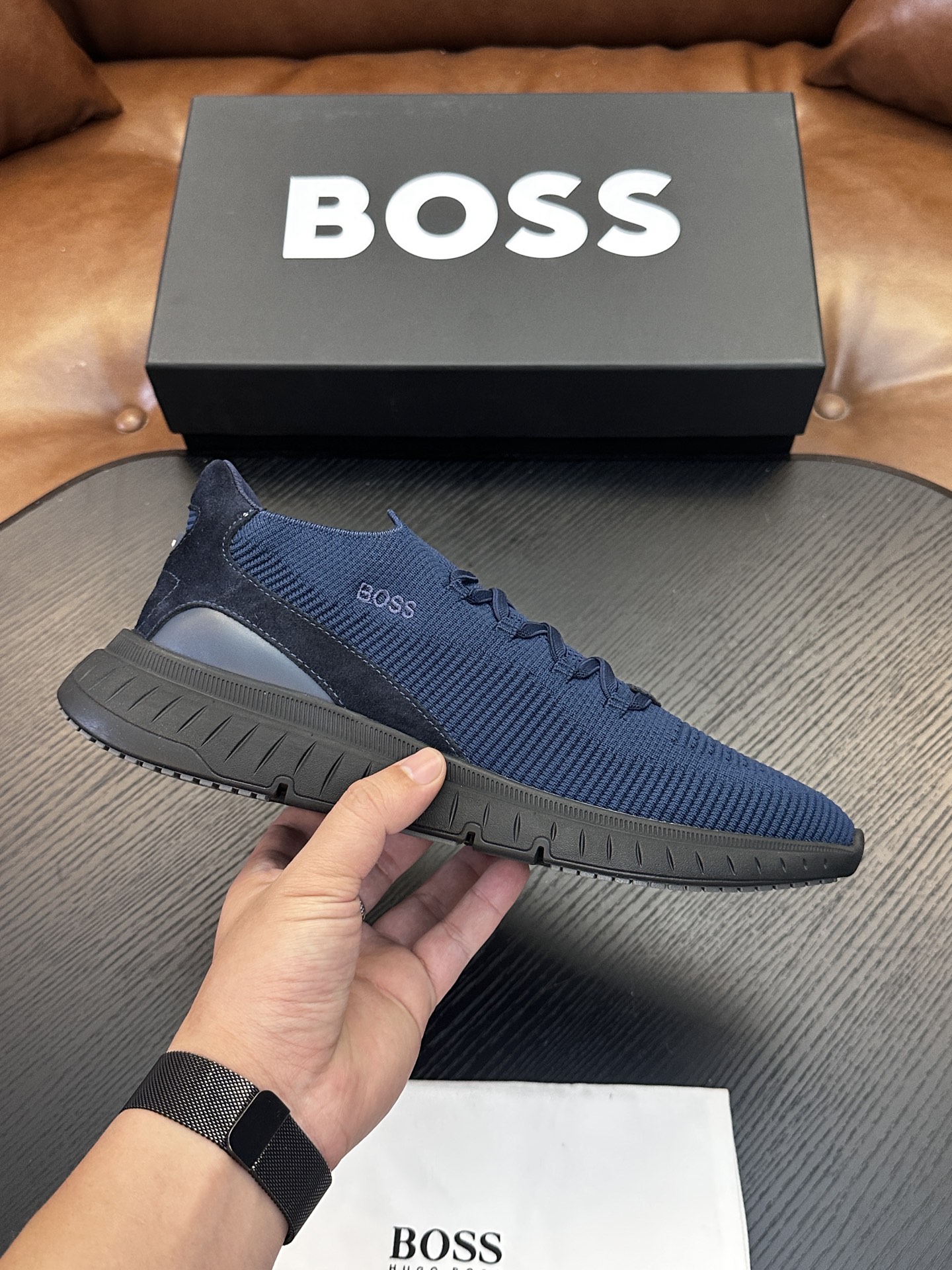 Ce chaussures est de qualité AAAAA 1: 1 (superbe). Les matériaux utilisés sont identiques à ceux d'origine. Les marques de marque BOSS ne se distinguent pas de l'authentique. Les photos prennent par chaussures réels, ce que vous recevez sera 100% identique avec nos photos.
