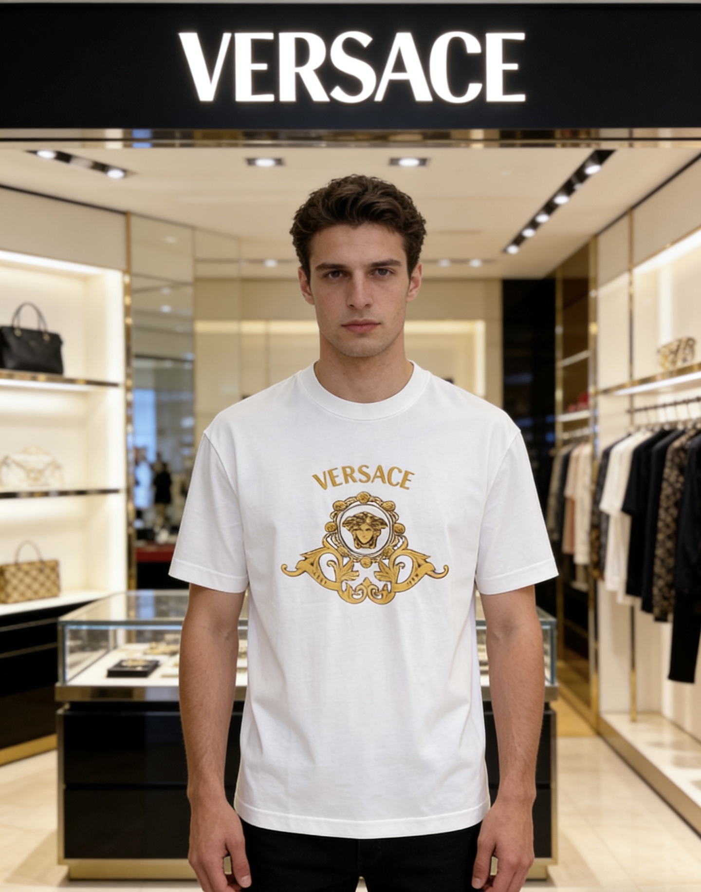 Ce vêtements est de qualité AAAAA 1: 1 (superbe). Les matériaux utilisés sont identiques à ceux d'origine. Les marques de marque Versace ne se distinguent pas de l'authentique. Les photos prennent par vêtements réels, ce que vous recevez sera 100% identique avec nos photos.