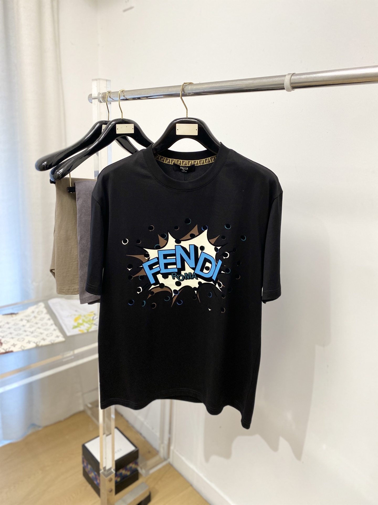 Ce vêtements est de qualité AAAAA 1: 1 (superbe). Les matériaux utilisés sont identiques à ceux d'origine. Les marques de marque Fendi ne se distinguent pas de l'authentique. Les photos prennent par vêtements réels, ce que vous recevez sera 100% identique avec nos photos.